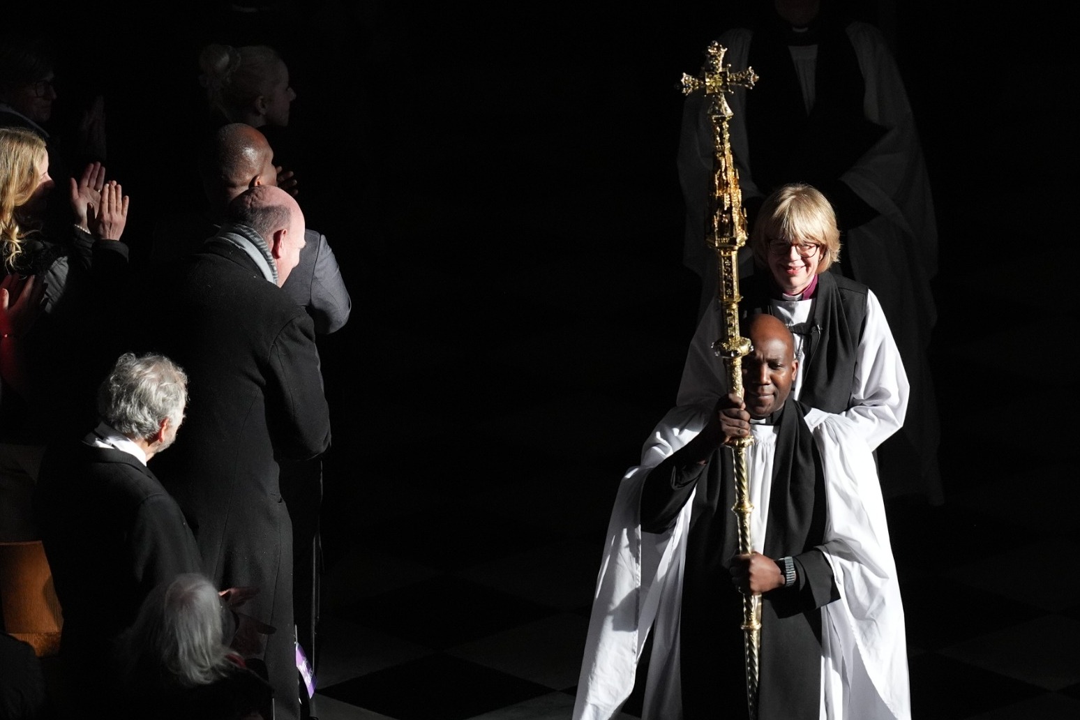 The new archbishop did not preach at Wednesday’s service, but Dame Sarah’s first act in her new role was to take up the Primatial Cross and give a blessing at the end of the ceremony.