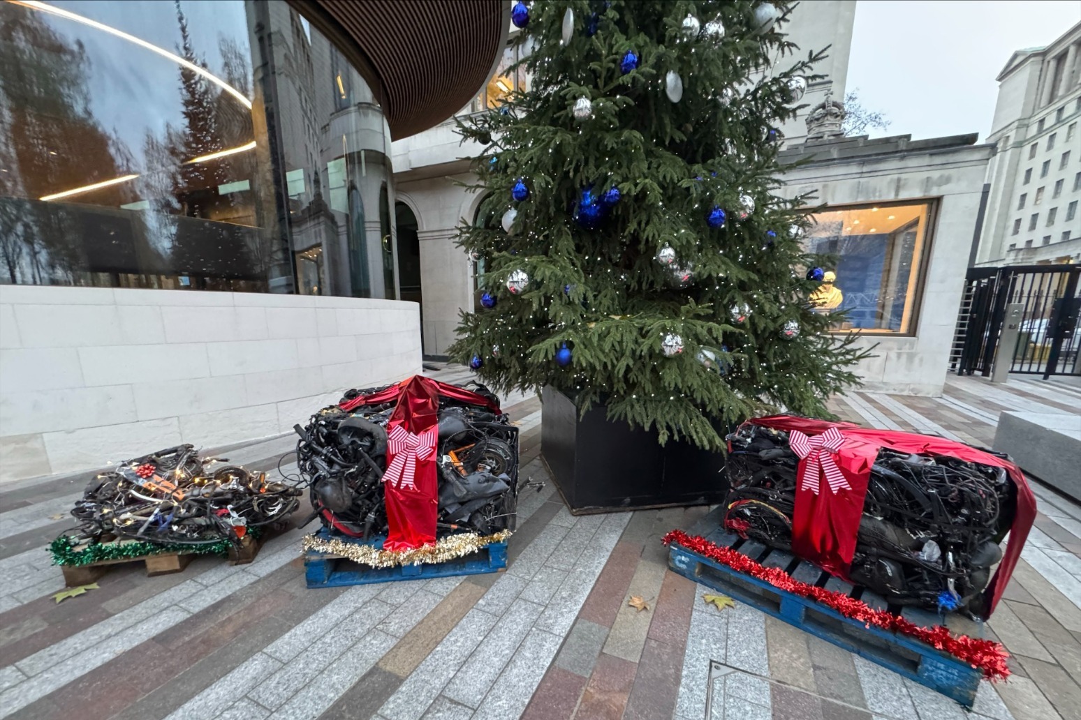 Once an illegal e-bike has been seized, the hazardous and recyclable parts are removed and the bike is crushed down.